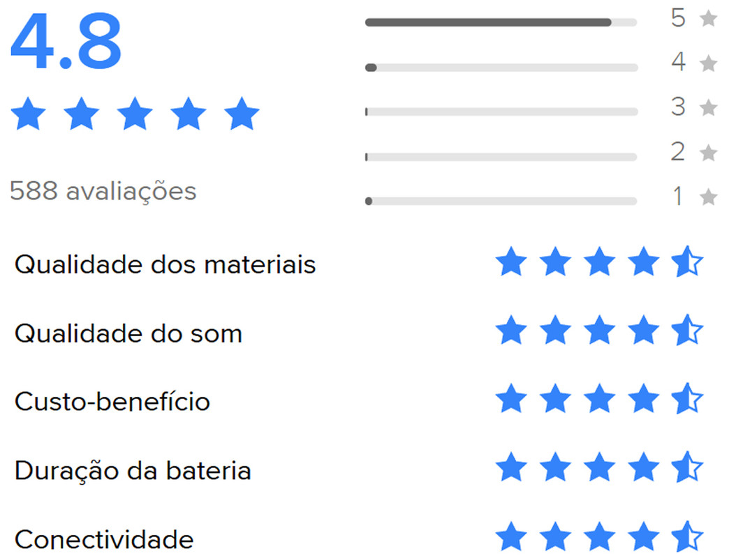Excelência, som de qualidade e praticidade na hora de usar. Parabéns a JBL acertou novamente em mais uma caixa de som, seus graves e subgraves são excelentes. Pra quem reclama é porque não está sabendo usar. Comprei a minha e escutei mais de 20 hrs no volume médio sem explorar muito os graves no máximo. Como exemplo : se utilizar um carro na sua rotação máximo do motor obviamente vai consumir mais combustível, assim funciona a caixa JBL com sua bateria. Se colocarmos no volume máximo explorando seus altos graves ela consumirá mais a energia de sua bateria.